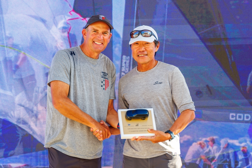 After no racing could be completed on this final day of the season, due to very light winds and the threat of thunderstorms, Takashi Okura’s Sled team win the 52 SUPER SERIES Porto Cervo Range Rover regatta title, their second triumph in Porto Cervo since their whitewash in 2019 when the circuit last visited Porto Cervo.